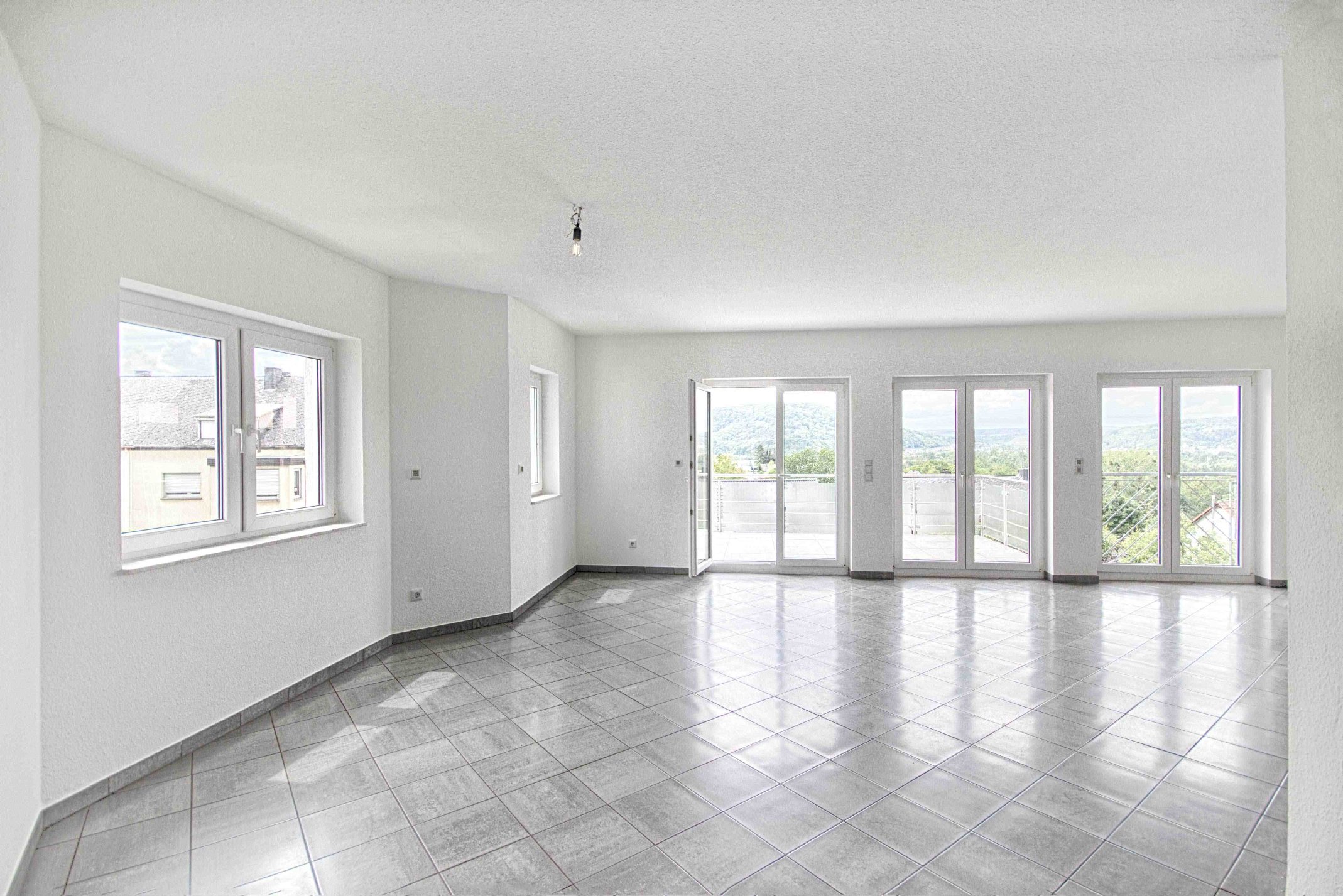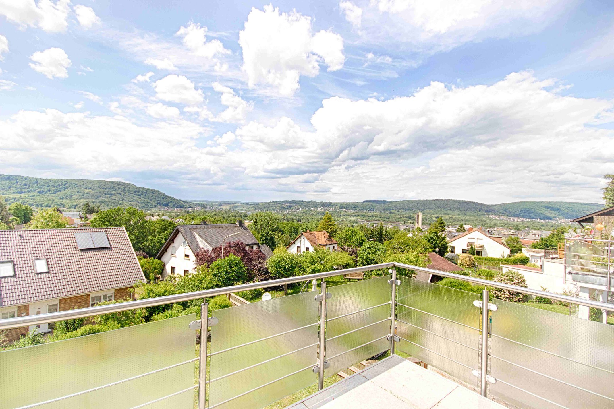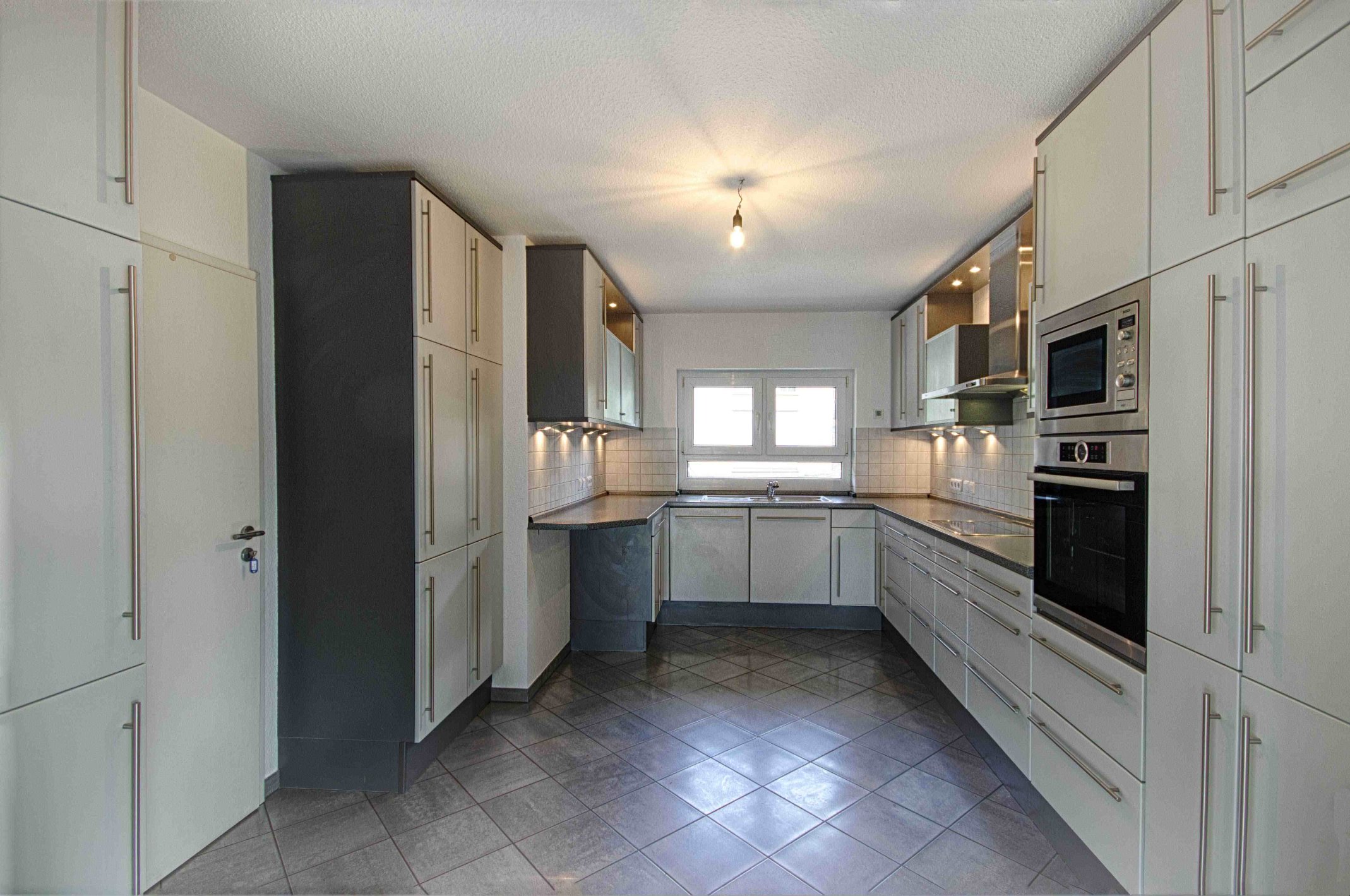 Im EG, ca. 92 m², dominiert der unverbaubare Fernblick über Konz bis zur Mosel, den Sie vom Wohnzimmer, bzw. Balkon aus, genießen können. Für eine Verschattung sorgen elektrische Jalousien mit Zeitschaltuhr und auf dem terrassenförmigen Balkon eine elektrisch bedienbare Markise. Vom Wohn- Esszimmer aus hat man einen direkten Zugang zur großen Küche. Die hochwertige Einbauküche ist im Kaufpreis enthalten. Ein Bürozimmer, das auch als Gästezimmer zu nutzen ist und ein G-WC runden den gefälligen Grundriss ab.