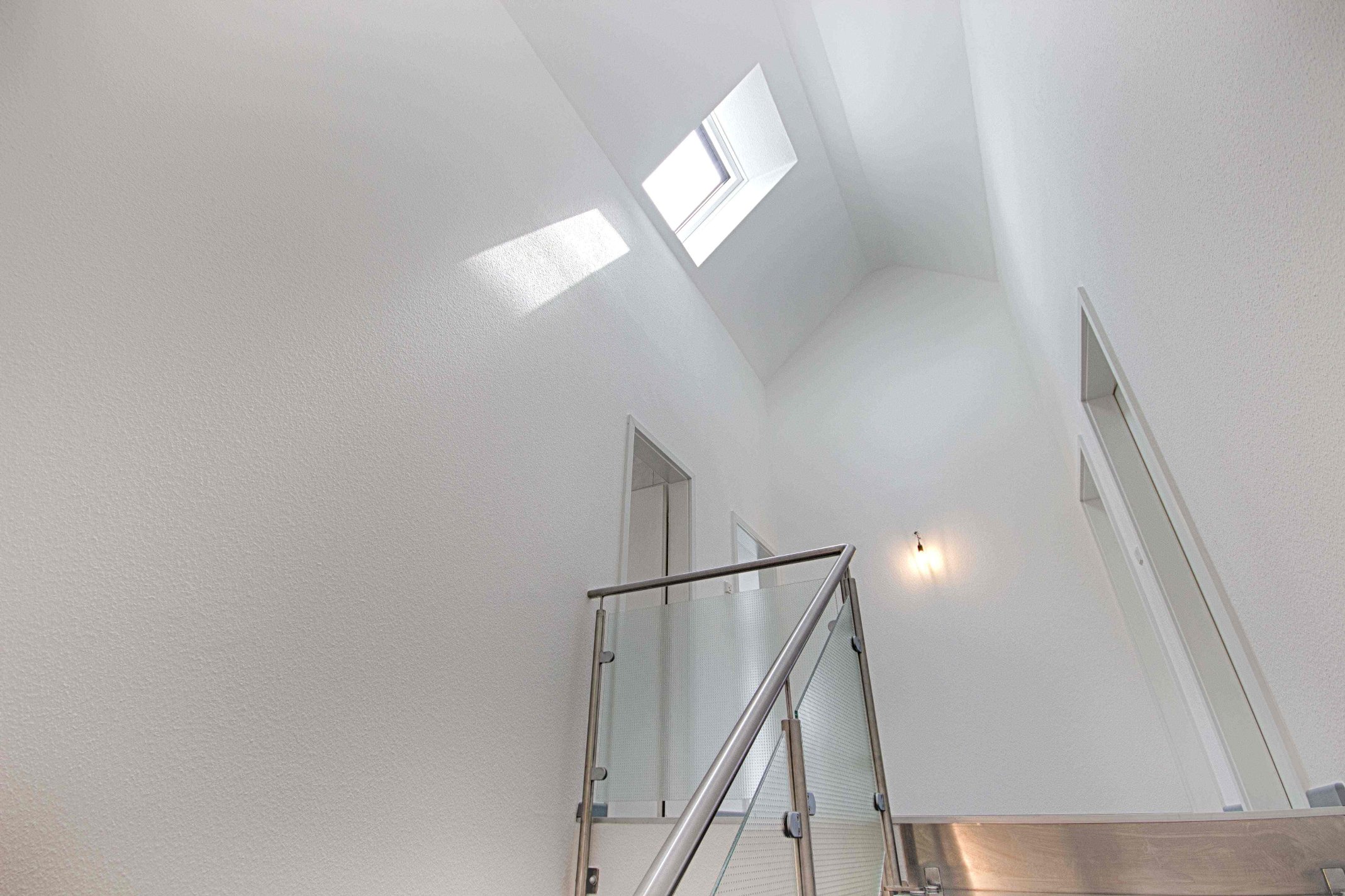 Die Räume im UG und DG werden über Flachheizkörper beheizt. Im EG wird die Wärme über eine Fußbodenheizung transportiert.