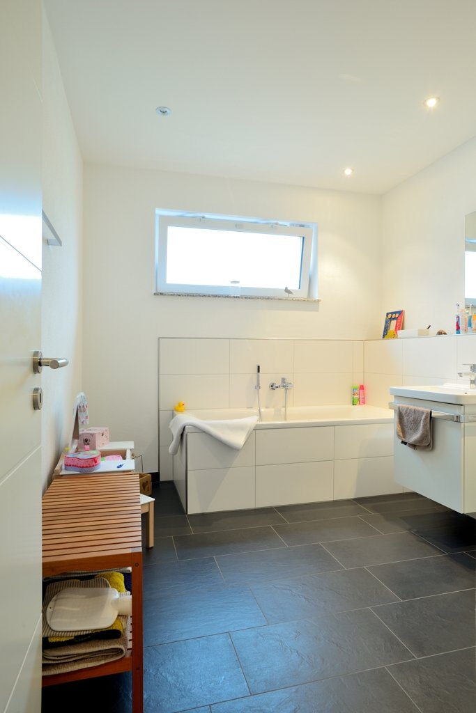 - Ausstattung des Bades Dusche Badewanne Fenster
